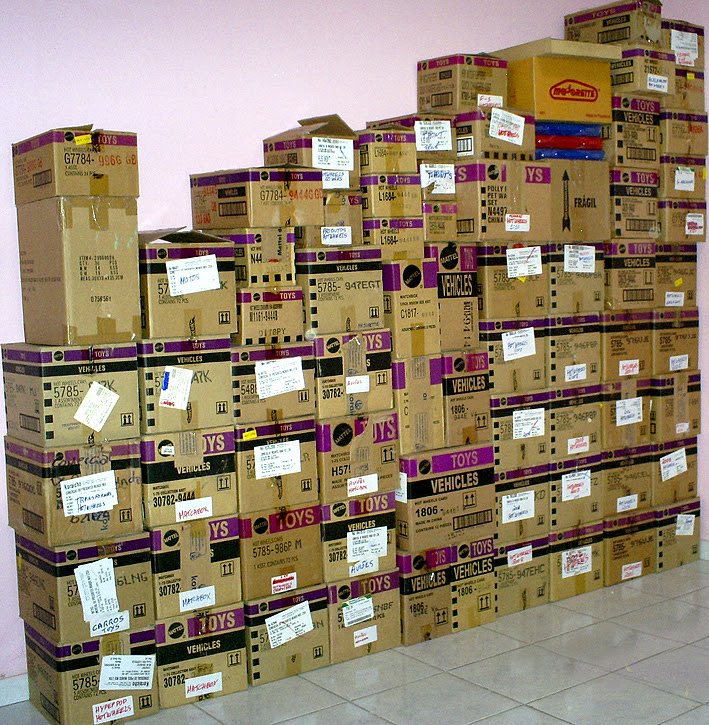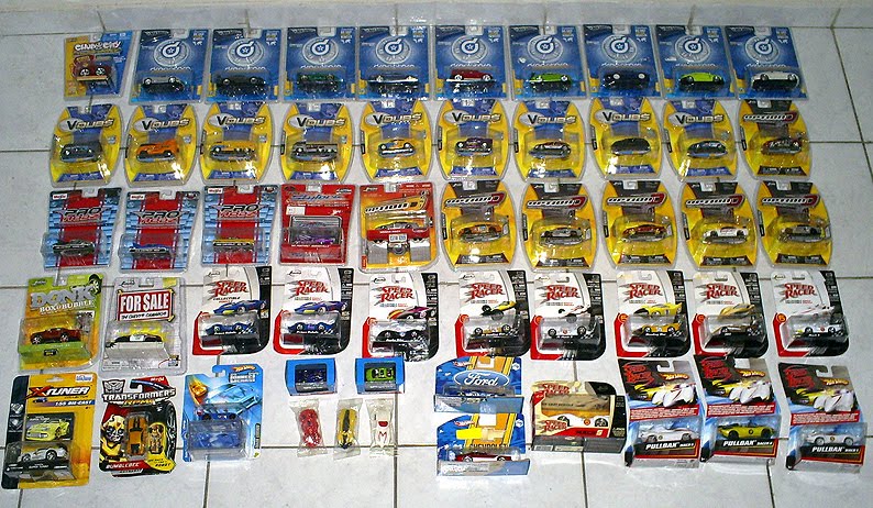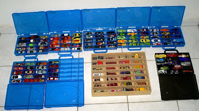 Ao todo são mais de 2500 carros por enquanto, na maioria 1:64 dentro dos blisters. Guardo toda minha coleção de brinquedos, bonecos de ação, dvds e games em um quarto da nossa casa longe dos meus filhos em caixas, pois não possuo espaço ainda para expor.