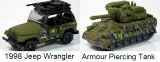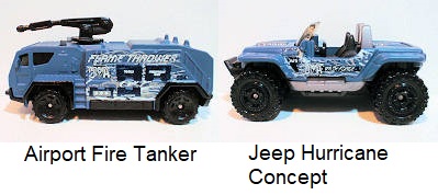Airport Fire Tanker MB#0594 – esse modelo de um carro de bombeiros (genérico) de aeroporto apareceu pela primeira vez em vermelho na 1-75 de 2004 e foi aproveitado como um “Lança Chamas” (Flame Thrower), desvirtuando completamente o modelo, que passou de apagar fogo para colocar fogo.
