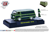 A M2 Machines fez mais uma versão da 1963 Ford Econoline, dessa vez com a Van Go em 3 variações, e mais uma “chase” bem limitada. Repare que os três modelos fazem parte de uma sequência de customização, com o primeiro carro bem original (exceto o chassi rebaixado), o segundo com interior customizado, e o terceiro totalmente customizado. A idéia é que você compre os 3 modelos para ter a sequência toda, e a explicação dessa série você vê na última imagem. Clique aqui para ver tudo o que já mostramos da M2.